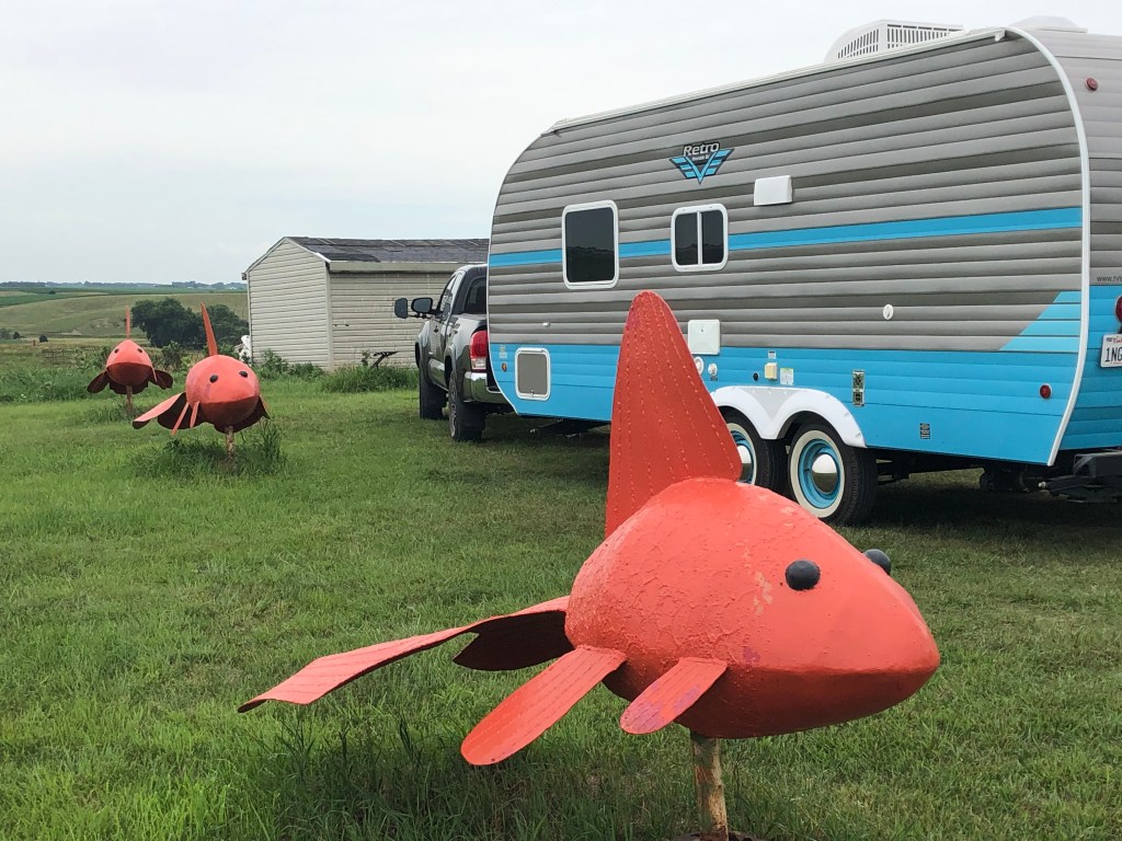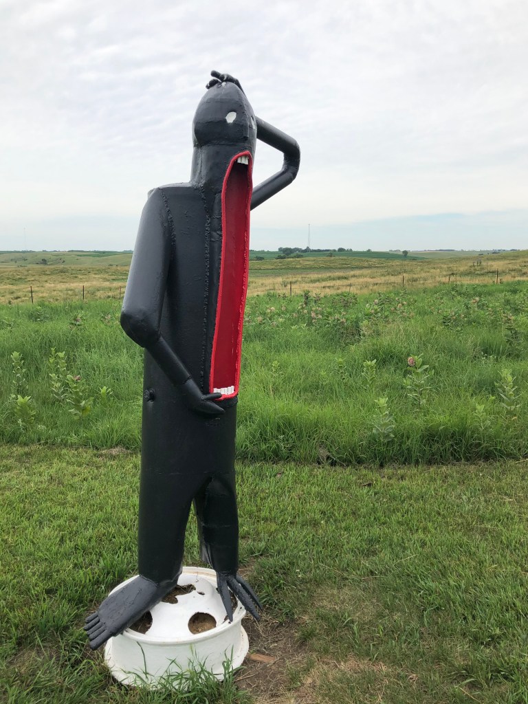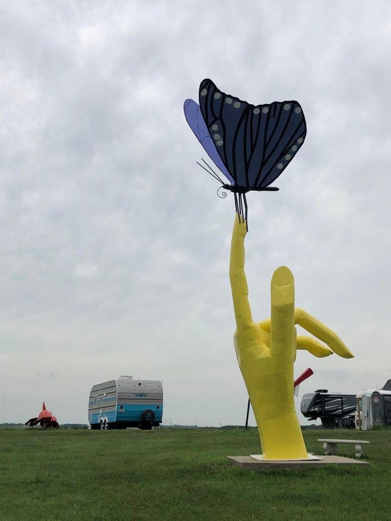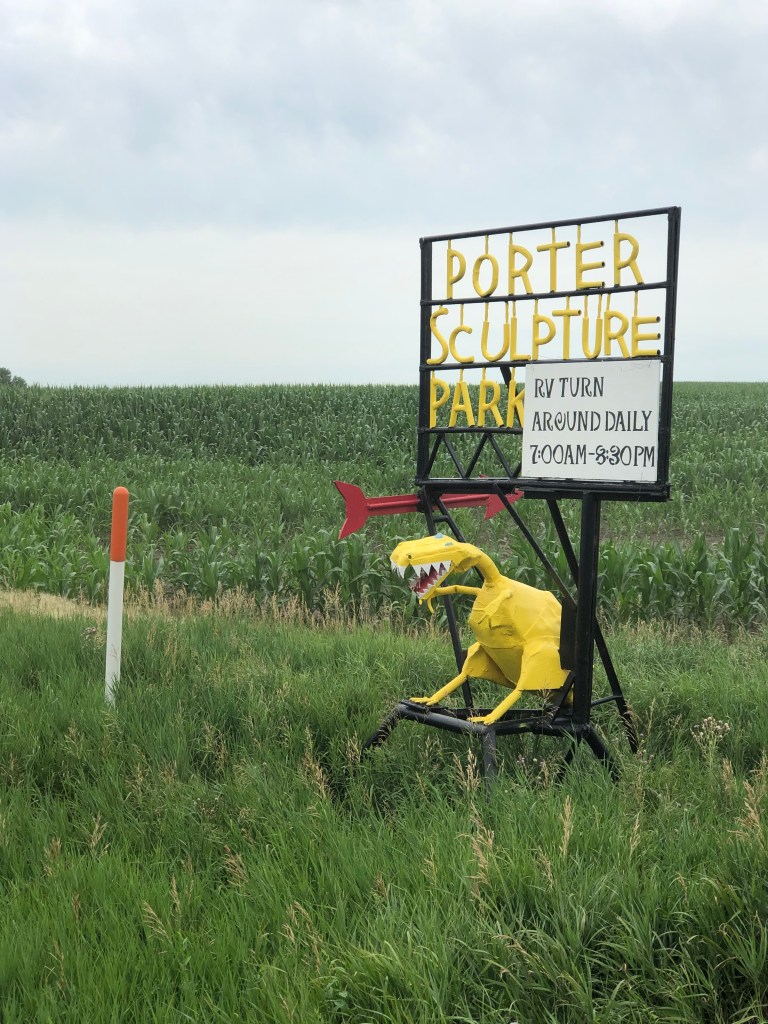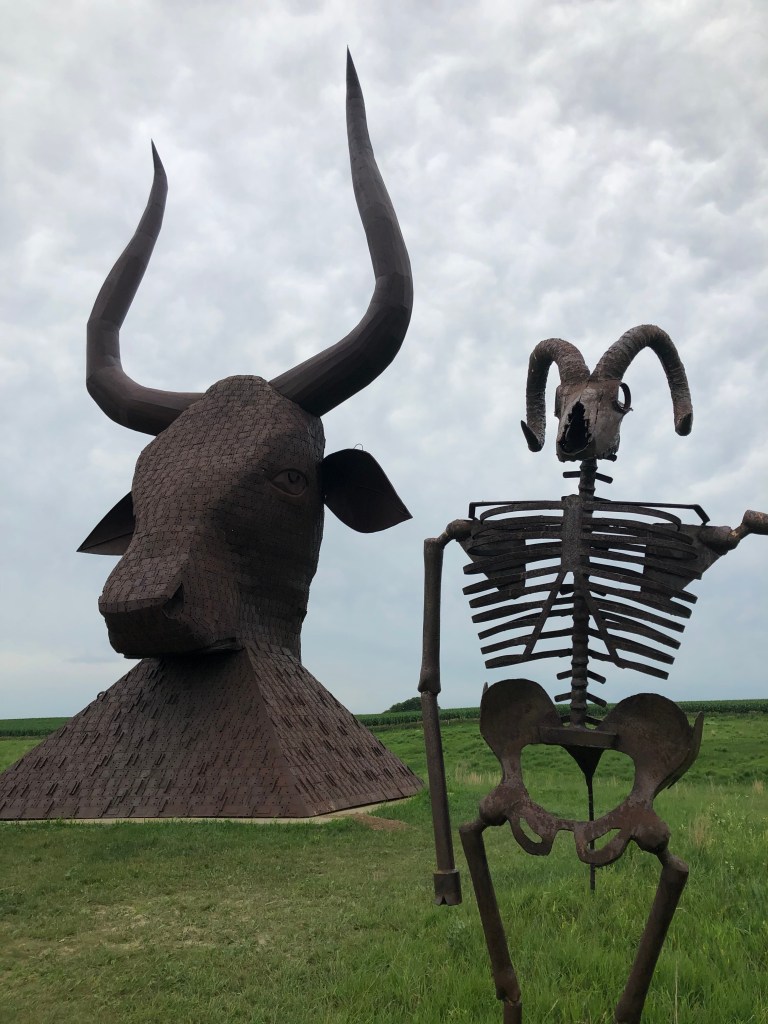 Anyway, I had found the sculpture park on the Harvest Host website and if I couldn’t stay there, I definitely wanted to see it. When Dan alerted me to the bull head sculpture I nearly made him run off the road exclaiming “This is the sculpture park! This is the sculpture park!” Poor Dan didn’t have a clue what I was talking abouts but turned off the highway and we proceeded to search for the park’s driveway amidst the corn fields.